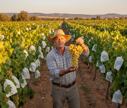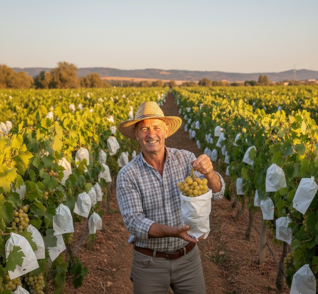 Juan solo cosecha la moscatel que es pura miel y sol. Ahora puedes recibir esos racimos selectos directos de su parral, asegurando un precio justo por su cuidado.