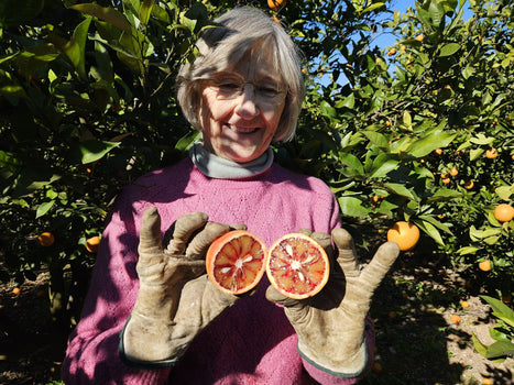 Las naranjas Sanguinelli de Maria Jesús son un verdadero espectáculo de la naturaleza. Su piel anaranjada con toques rojizos esconde una pulpa jugosa de tonos intensos y un sabor equilibrado entre dulzura y un ligero toque ácido.