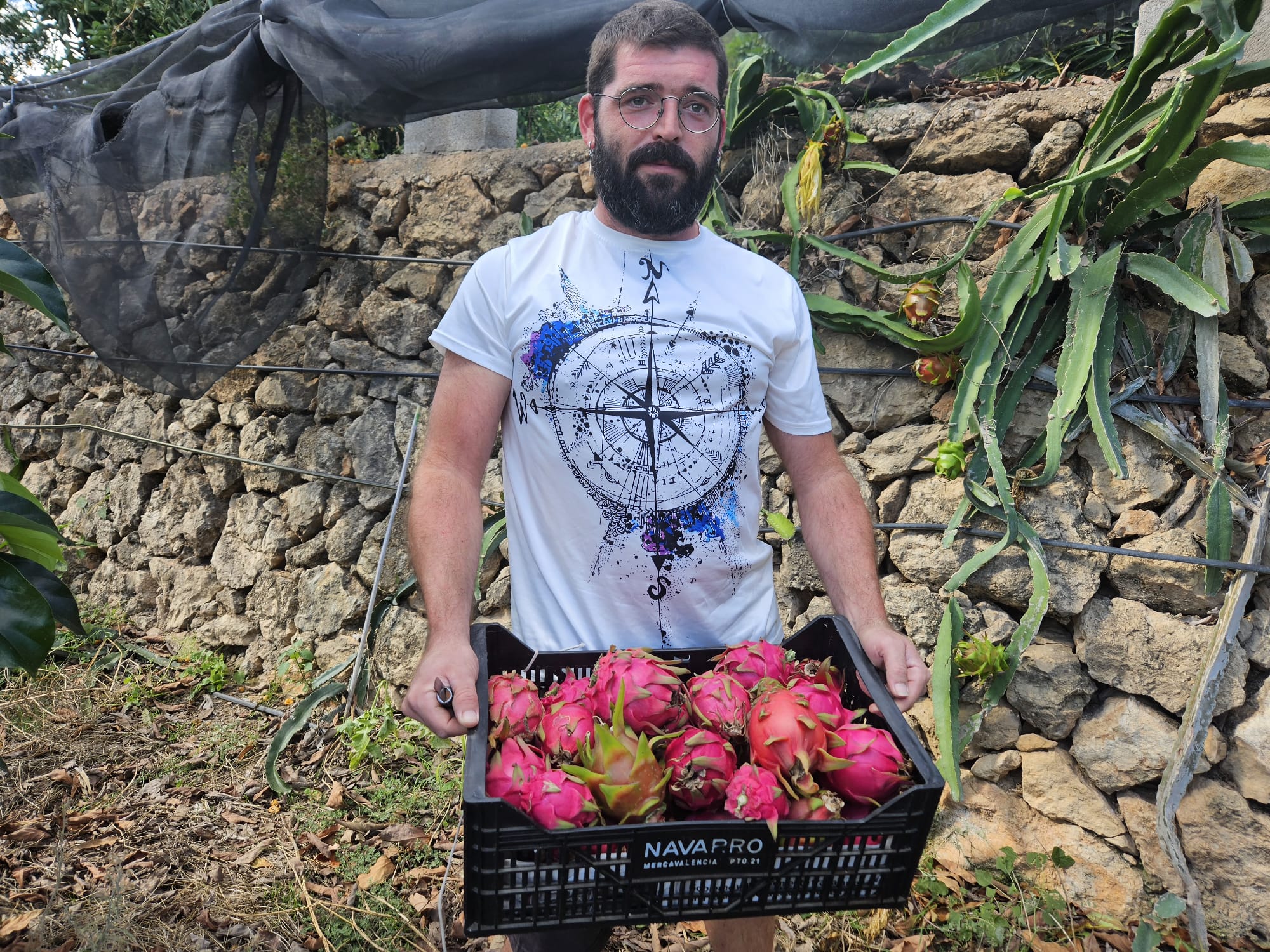 La pitaya, o fruta del dragón, de nuestros compañeros Pepe, Eric y Fran es un espectáculo para la vista: piel rosa con escamas verdes y pulpa blanca o roja con semillas negras.