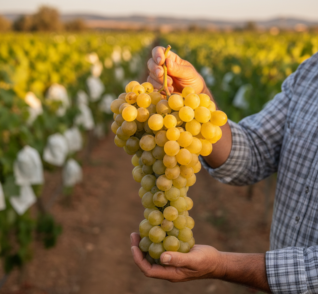 Juan solo cosecha la moscatel que es pura miel y sol. Ahora puedes recibir esos racimos selectos directos de su parral, asegurando un precio justo por su cuidado.
